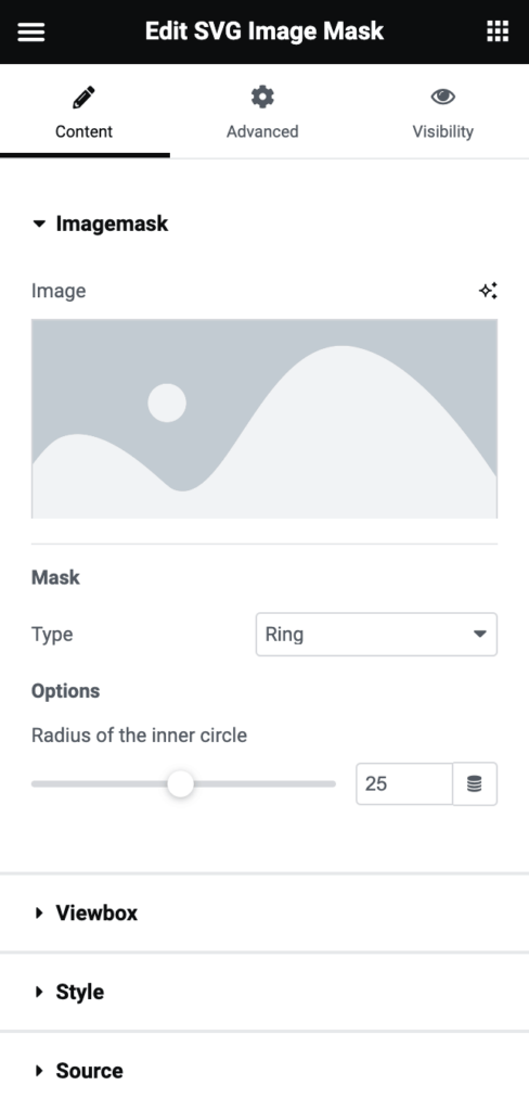 The SVG Mask widget allows you to mask your SVG path with an image or a specific shape.
