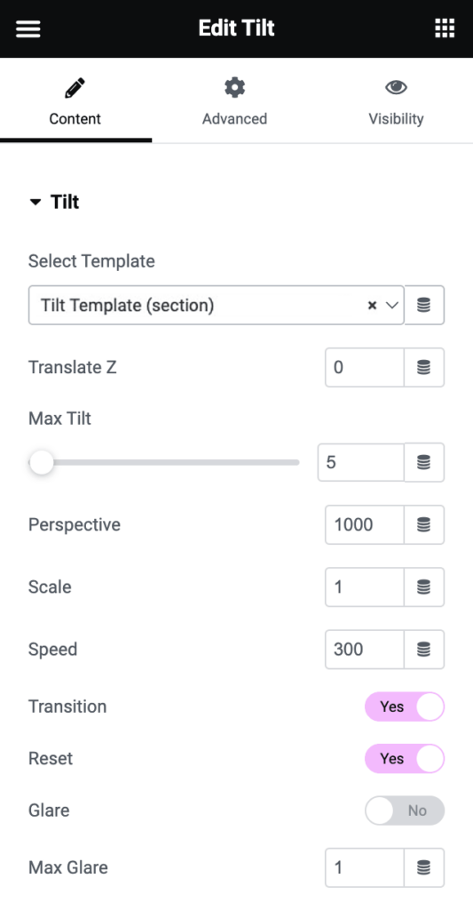 The Tilt widget allows you to apply a parallax hover tilt effect to a template.